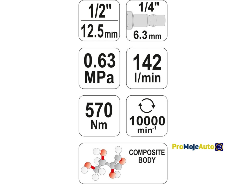 Robustní tělo rázového utahováku je zhotoveno z litého kompozitu a duralu, zabezpečuje dlouhou životnost při použití v průmyslu, v garážích a v dílnách.